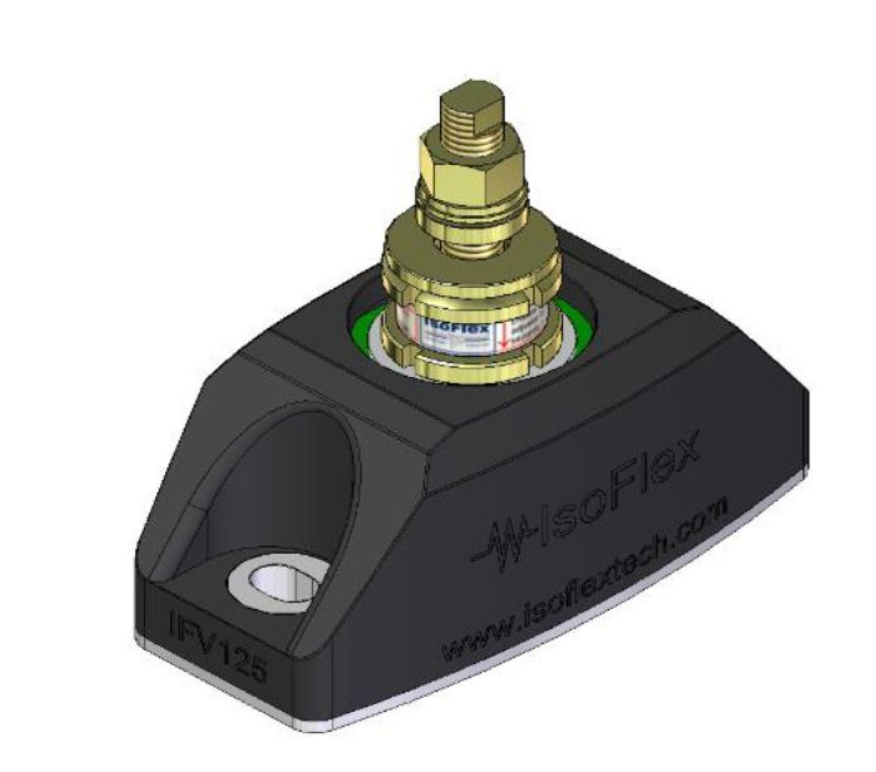 Isoflex self-aligning adjusters increase the mount's stud strength up to 3x by providing a compression fit. Adjusters allow up to 4 degrees of bracket-to-bearer misalignment to reduce point loading.