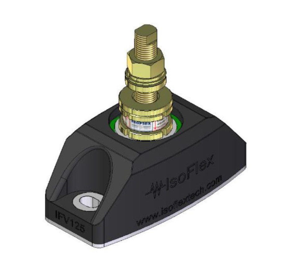 Isoflex self-aligning adjusters increase the mount's stud strength up to 3x by providing a compression fit. Adjusters allow up to 4 degrees of bracket-to-bearer misalignment to reduce point loading.