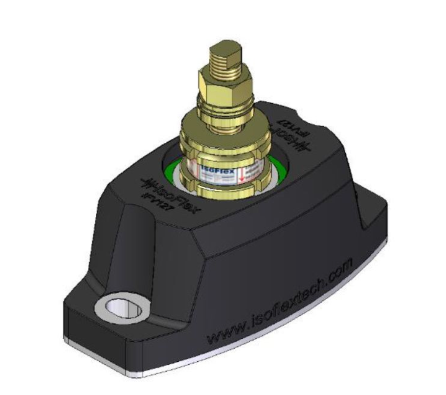 Isoflex self-aligning adjusters increase the mount's stud strength up to 3x by providing a compression fit. Adjusters allow up to 4 degrees of bracket-to-bearer misalignment to reduce point loading.