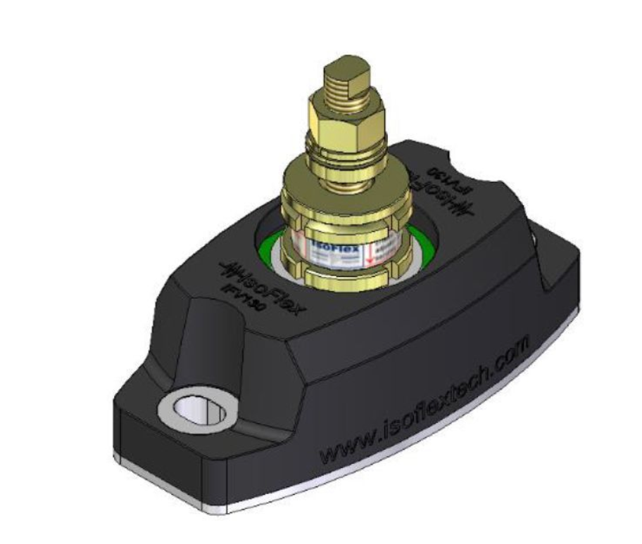 Isoflex self-aligning adjusters increase the mount's stud strength up to 3x by providing a compression fit. Adjusters allow up to 4 degrees of bracket-to-bearer misalignment to reduce point loading.