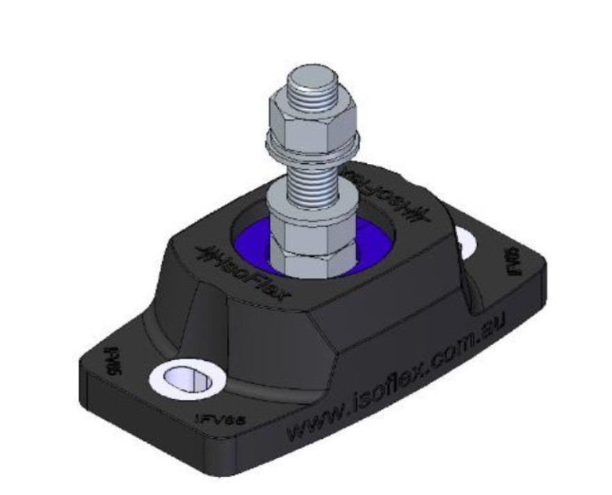 Isoflex self-aligning adjusters increase the mount's stud strength up to 3x by providing a compression fit. Adjusters allow up to 4 degrees of bracket-to-bearer misalignment to reduce point loading.