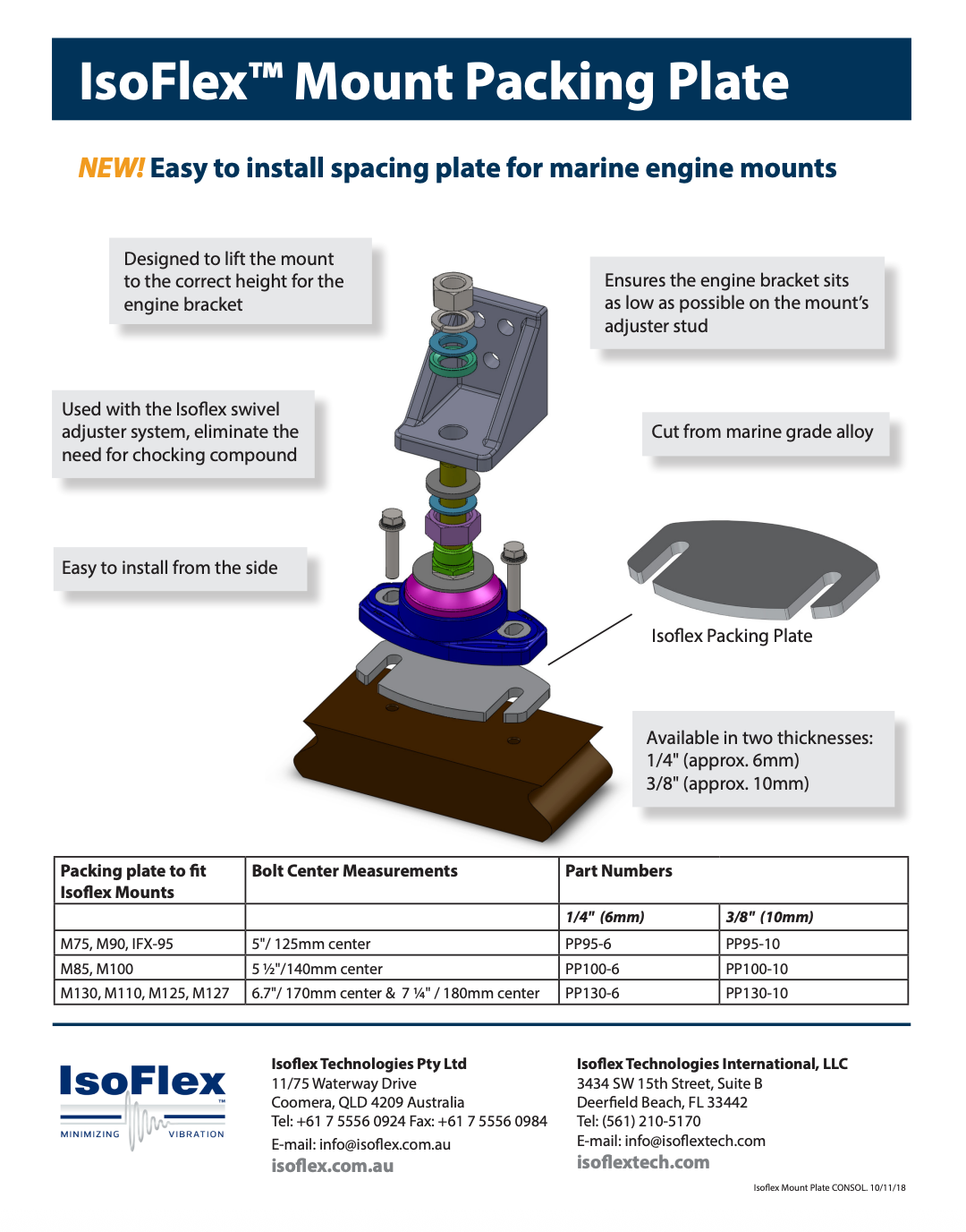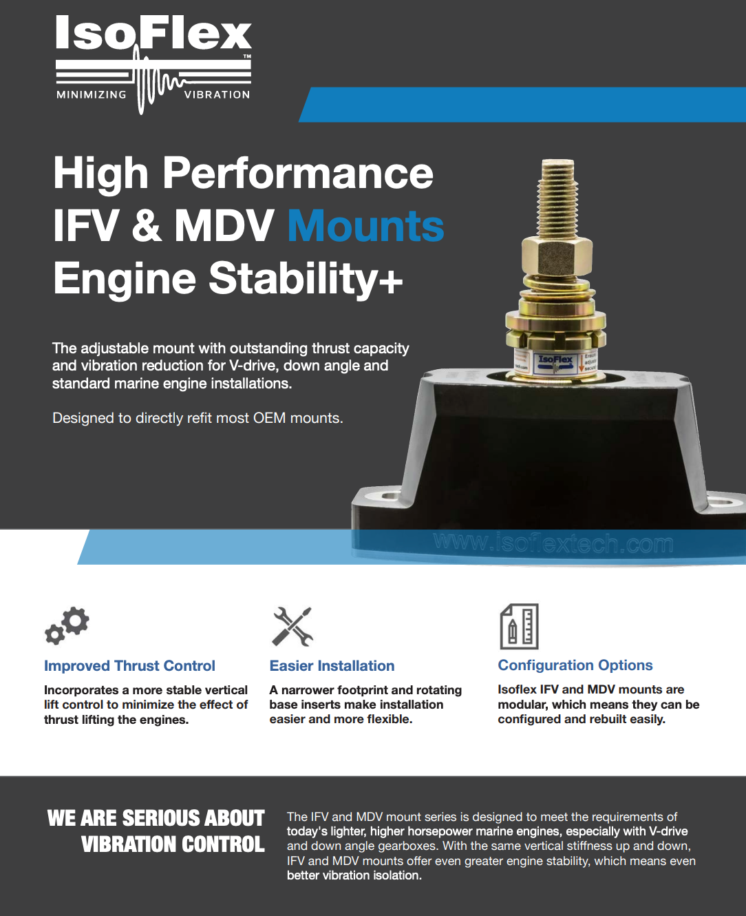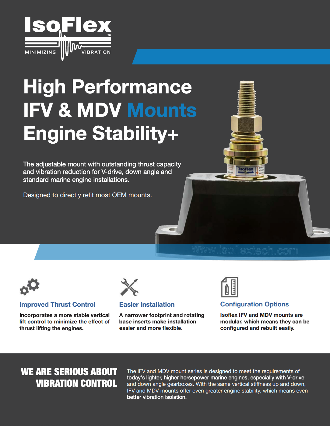 Isoflex manufactures a wide range of marine and industrial engine vibration minimizing products. IsoFlex's engine isolators, gearbox couplings and engine mounts provide superior performance and longevity because they specifically resist fuels, oils and water.