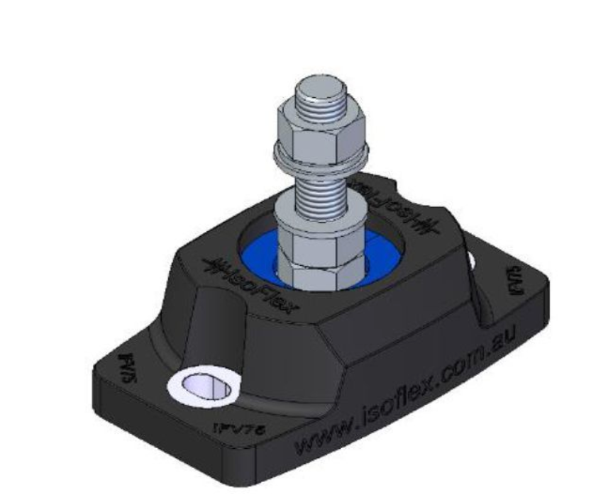 Isoflex self-aligning adjusters increase the mount's stud strength up to 3x by providing a compression fit. Adjusters allow up to 4 degrees of bracket-to-bearer misalignment to reduce point loading.